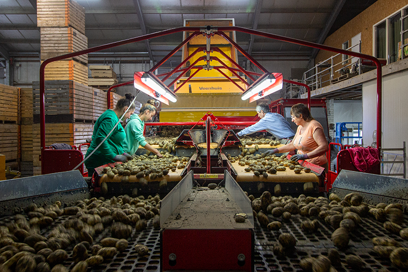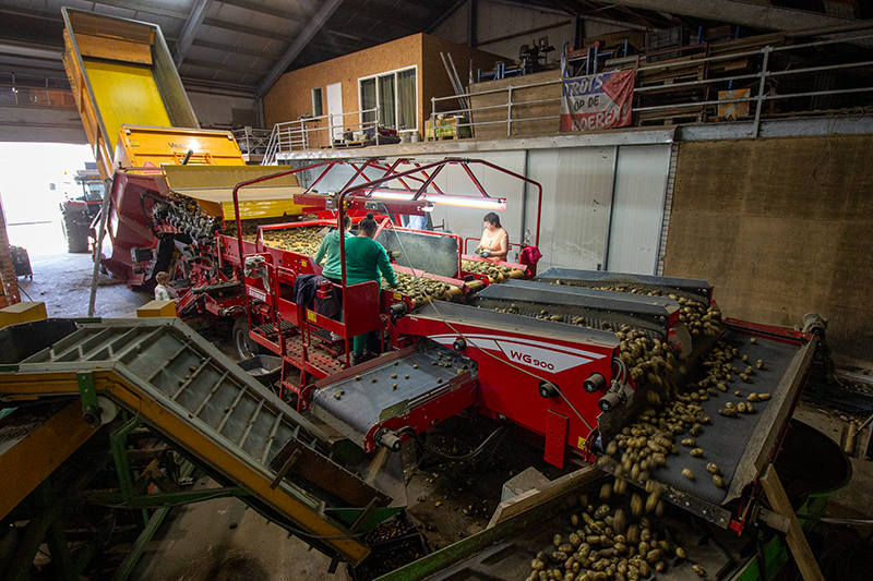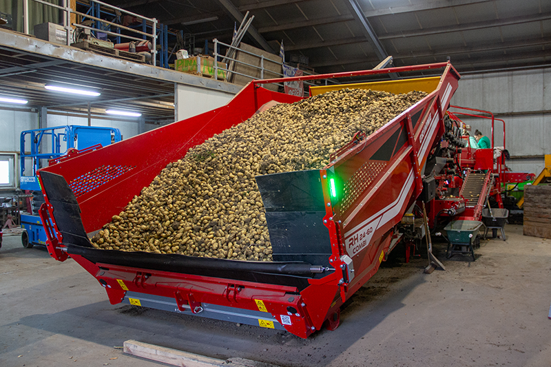 De stortbak is o.a. uitgebreid met een sorteerder, stenen- en kluitenscheiding, een ergonomisch opgebouwde leestafel en tenslotte een web sorteerder. Dit alles is te bedienen middels de Grimme GBT831 bedieningsterminal. Veel succes met deze luxe machine!